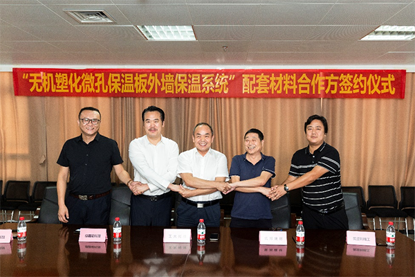 五家企業(yè)強(qiáng)強(qiáng)聯(lián)手 開創(chuàng)行業(yè)發(fā)展新未來: “無機(jī)塑化微孔保溫板”外墻保溫系統(tǒng)配套材料合作方簽約儀式在鄭舉行