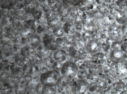 為了幫助記者理解,趙振波解釋說,“這些氣泡孔壁平均厚度45微米?!蓖ㄟ^投影儀投射,顯微鏡下可以清晰地看到數(shù)以億計的泡孔,密密麻麻,猶如“銅墻鐵壁”一樣。